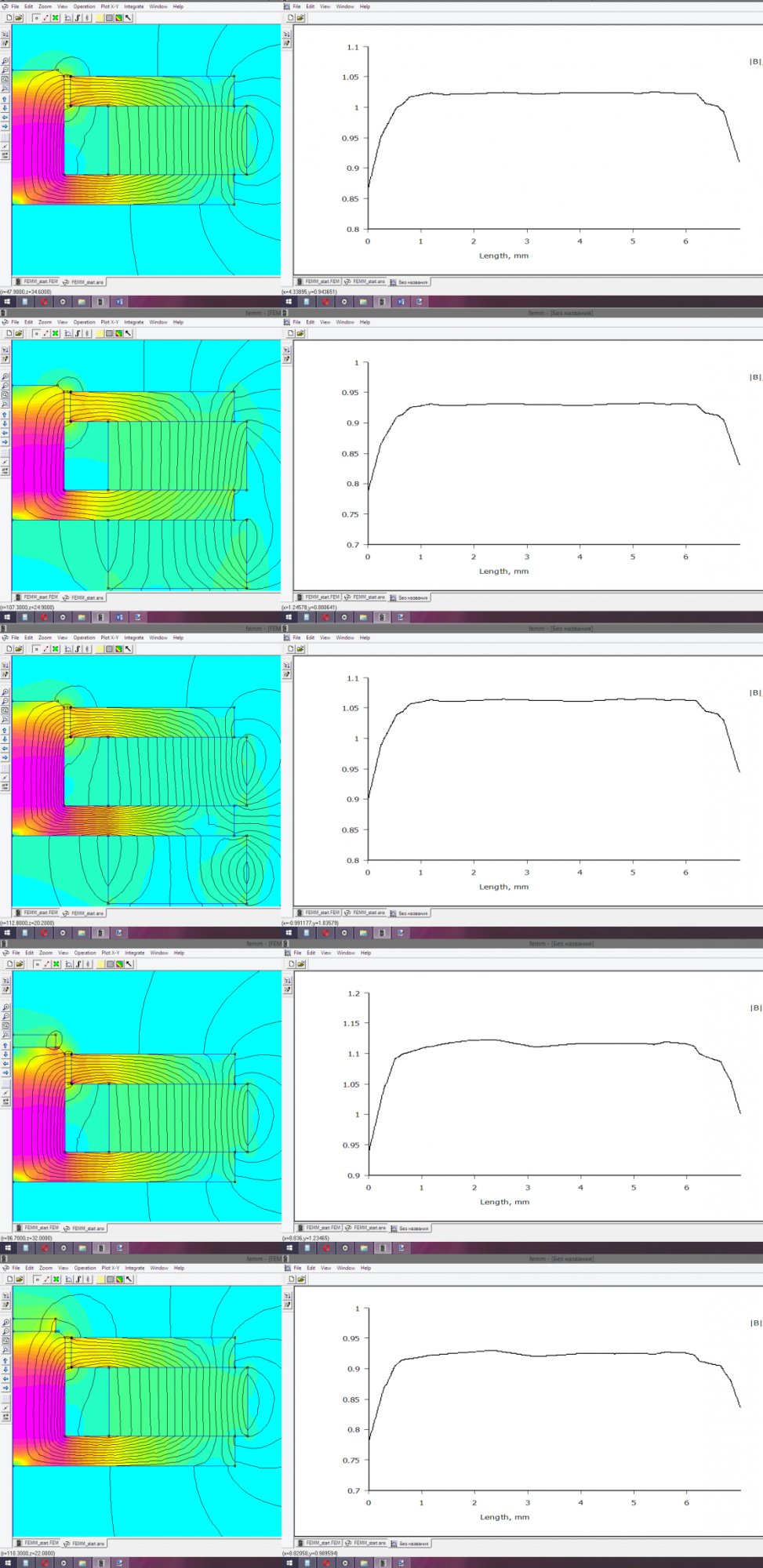 Повышение равномерности поля вне зазора решается классическим путём - просто надо удлинить керн.
