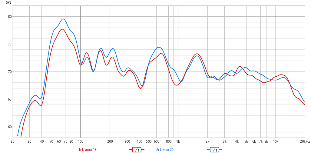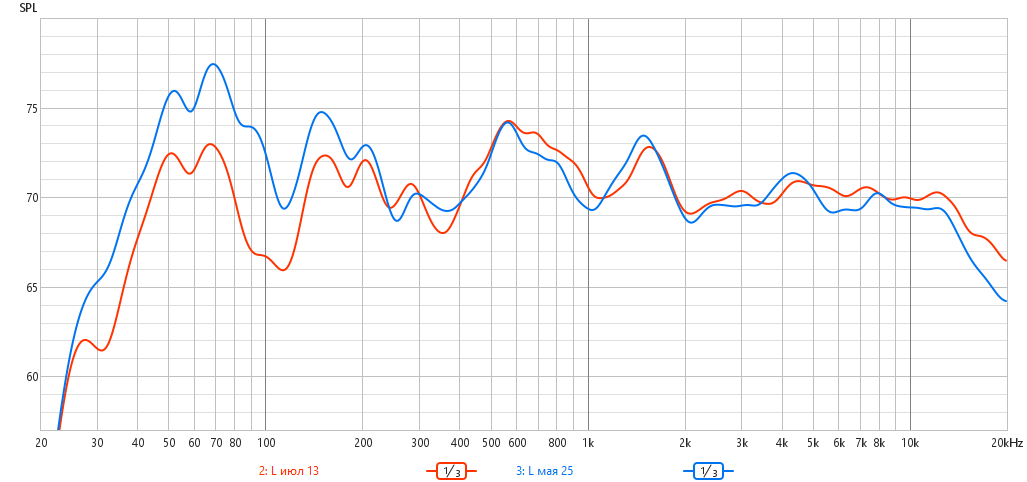 Появилась! Две АС на позиции левой в 1/3 октавы, синяя - раньше, красная - сейчас (бывшая правая).