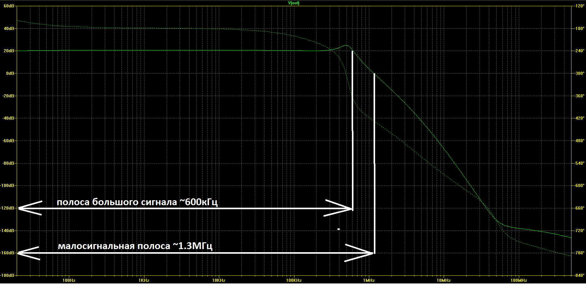 на примере простейшей "Лихорадки". Малосигнальная полоса около 1.3МГц. Мне кажется гр. Петрову уже нос как буратине печатать мешает- ибо царапает монитор.