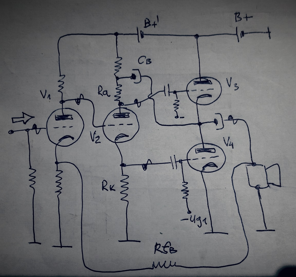 Худ, конечно оригинал по своему, смог одним транзистором между базами квази выхода, решить проблему,на которую нужно потратить (десяток +) транзисторов, куча обвеса специфика настроек, и при этом получил хороший результат