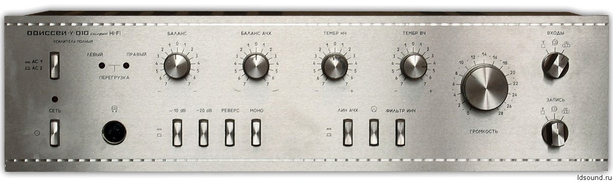 Назначение: усилитель «Одиссей-у-010» стерео Hi-Fi предназначен для двухканального усиления сигналов низкой частоты от электропроигрывателя, радиоприемника магнитофона и других двухканальных и одноканальных бытовых источников сигнала.
