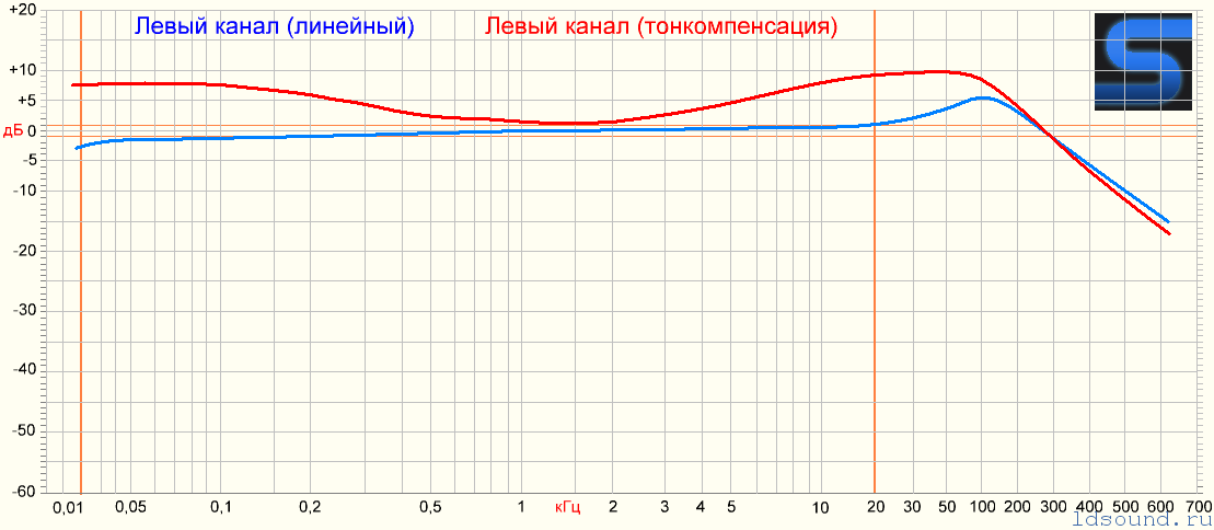 Тонкомпенсация тоже скромная. Может это и не плохо, но до кривых равной громкости очень далеко. Наверное, расчитывали что пользователи сначала поставят режим "дискотэка", а потом выкрутят в плюс до упора и тембр и тонкомпенсацию.