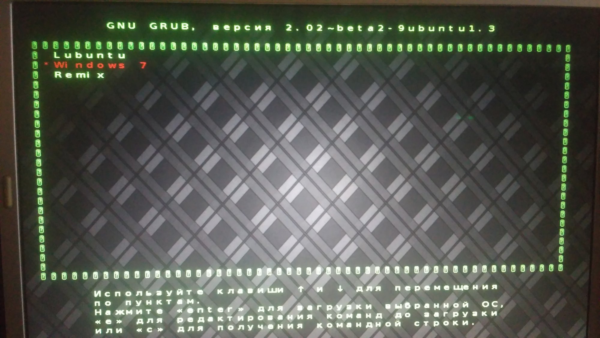 Видите, у меня вот так. Первая Lubuntu, вторая - 7ка, третья - вообще Ремикс. Это Андроид для ПК. По умолчанию загружается первая после 5с бездействия