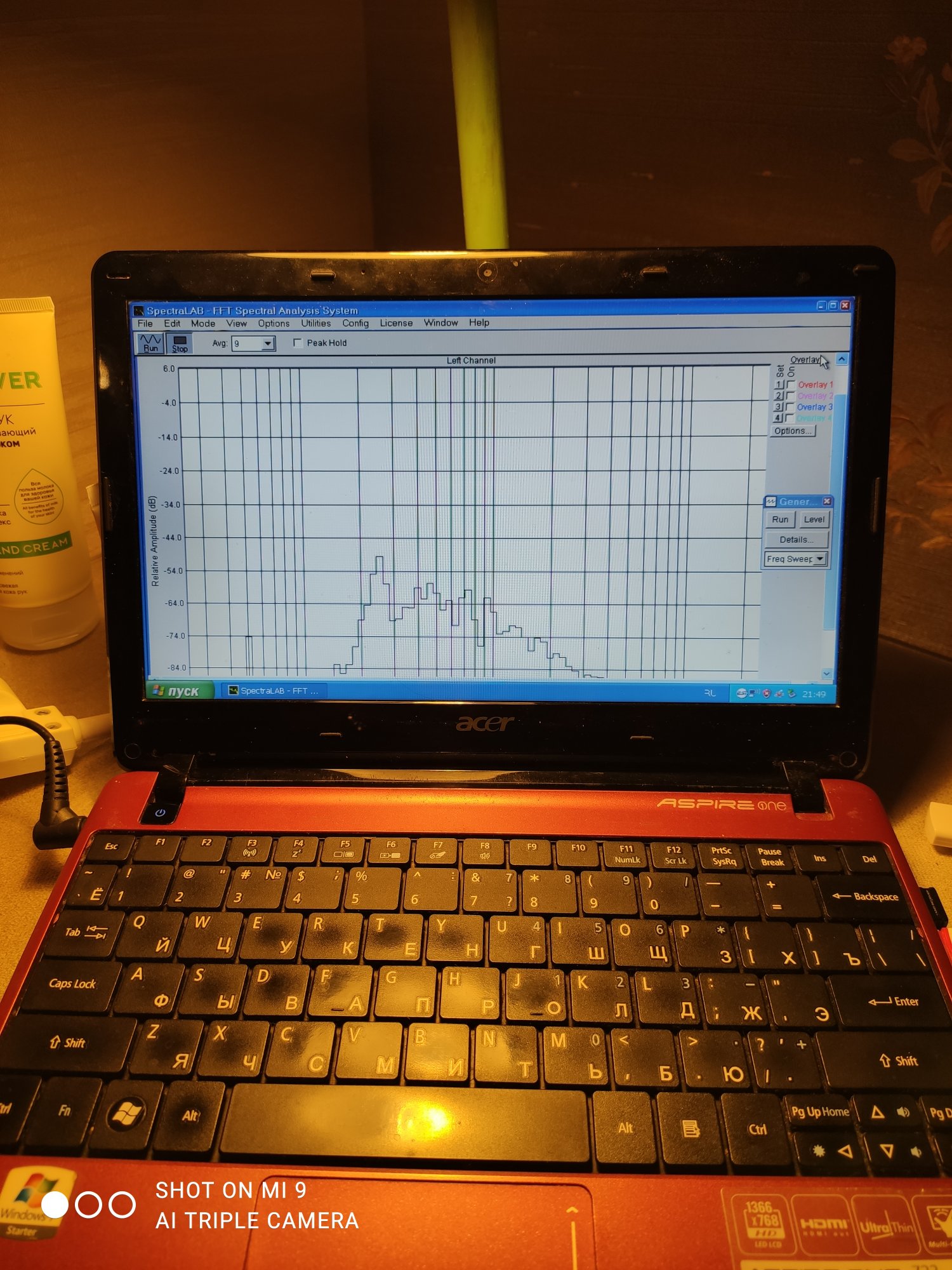 Виндоус планировался в основном для акустических измерений. Спектралаб я вчера каким-то чудом установил. Точнее были проблемы с установкой Винрар - не ставился и всё. С пятой попытки таких же точно действий установился. Далее Спектра легко распаковалась и встала. Вроде бы работает, свипом свистит.