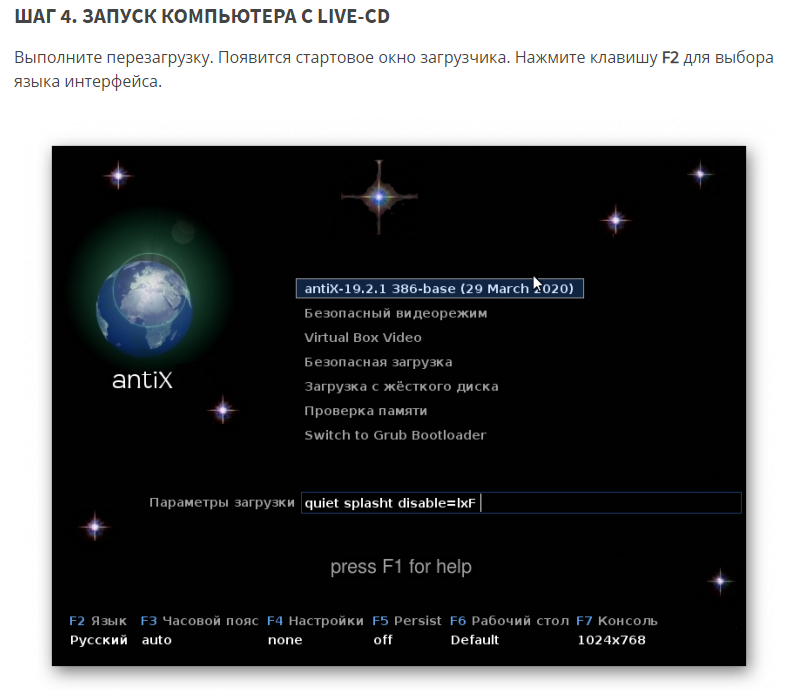 Я попытаюсь ещё раз запустить Антикс. Он на другой флешке. Я его не стирал.