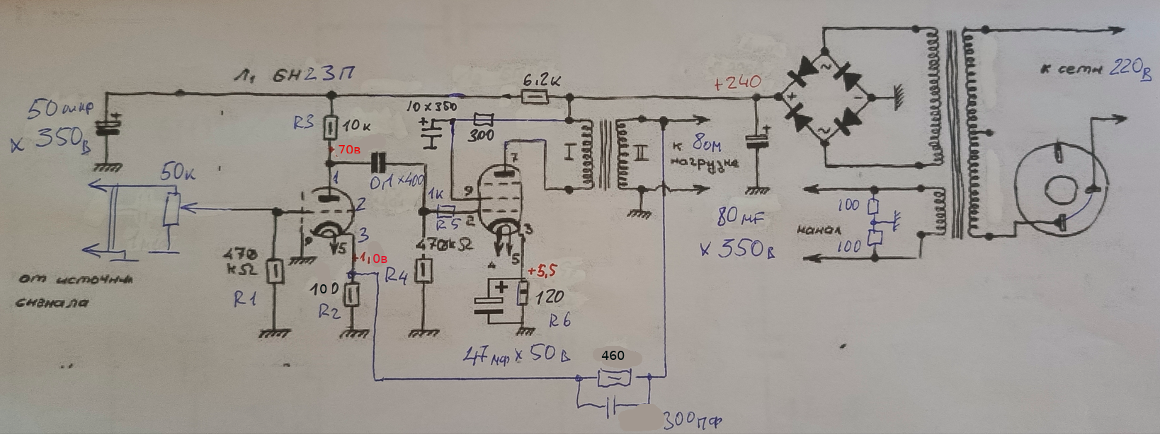 Применение ламп 6н23п или 6ж9п показало резкое снижение НЧ вплоть до 300гц (возможно из-за их большого усиления? в отличии от 6н1п)) исправить это получилось только значительным увеличением ООС.