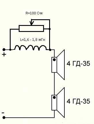 Вы писали про последовательное соединение 4гд-35 с обрезкой около 3-4 кГц катушкой. У меня точно такие же динамики, хочу повторить ту конструкцию, но не совсем понял как именно подключить индуктивный фильтр при таком соединении. Если подскажете - буду очень признателен за помощь.