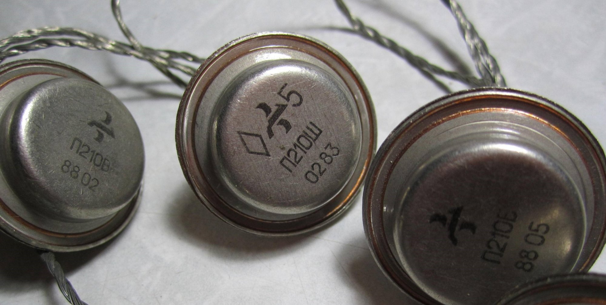 Транзисторы П210А германиевые сплавные структуры p-n-p универсальные. Предназначены для применения в переключающих устройствах, выходных каскадах усилителей низкой частоты, преобразователях постоянного напряжения. Используются для работы в радиотехнических и электронных устройствах общего и специального назначения. Выпускаются в металлостеклянном корпусе с гибкими выводами.