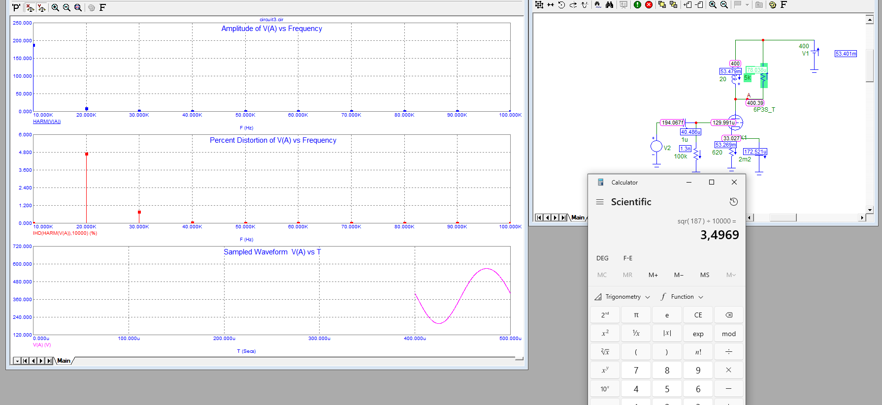Если надо точно 3к5, то анодное 300. В начале клиппинга 9ватт, при искажениях поменьше - 6-7 ваттт. Здесь драйвер уже 6Н1П