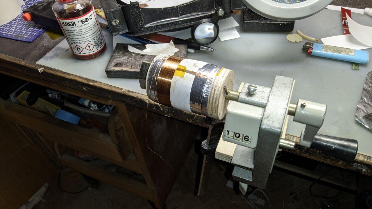 провод 0,21 по меди (что было, из того и мотал) Оммическое конечно высоковато получилось - 13,9Ом