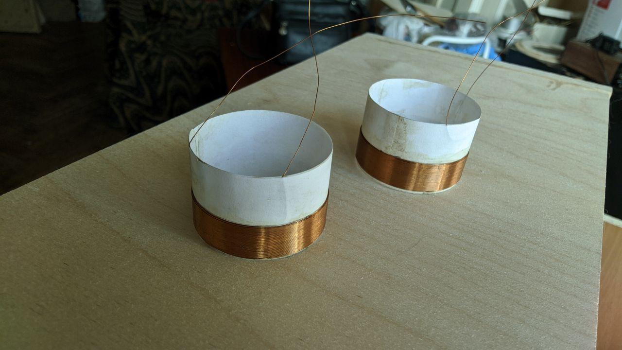 Я далеко не поклонник Рутковского, но мне понравилась его фраза что у НЧ катушка и диффузор должны весить одинаково, а лучше чтоб диффузор был легче. Вот у 8" при МС 10гд-30б у меня и вышло по 4 грамма на катушку (3 слоя) и диффузор.