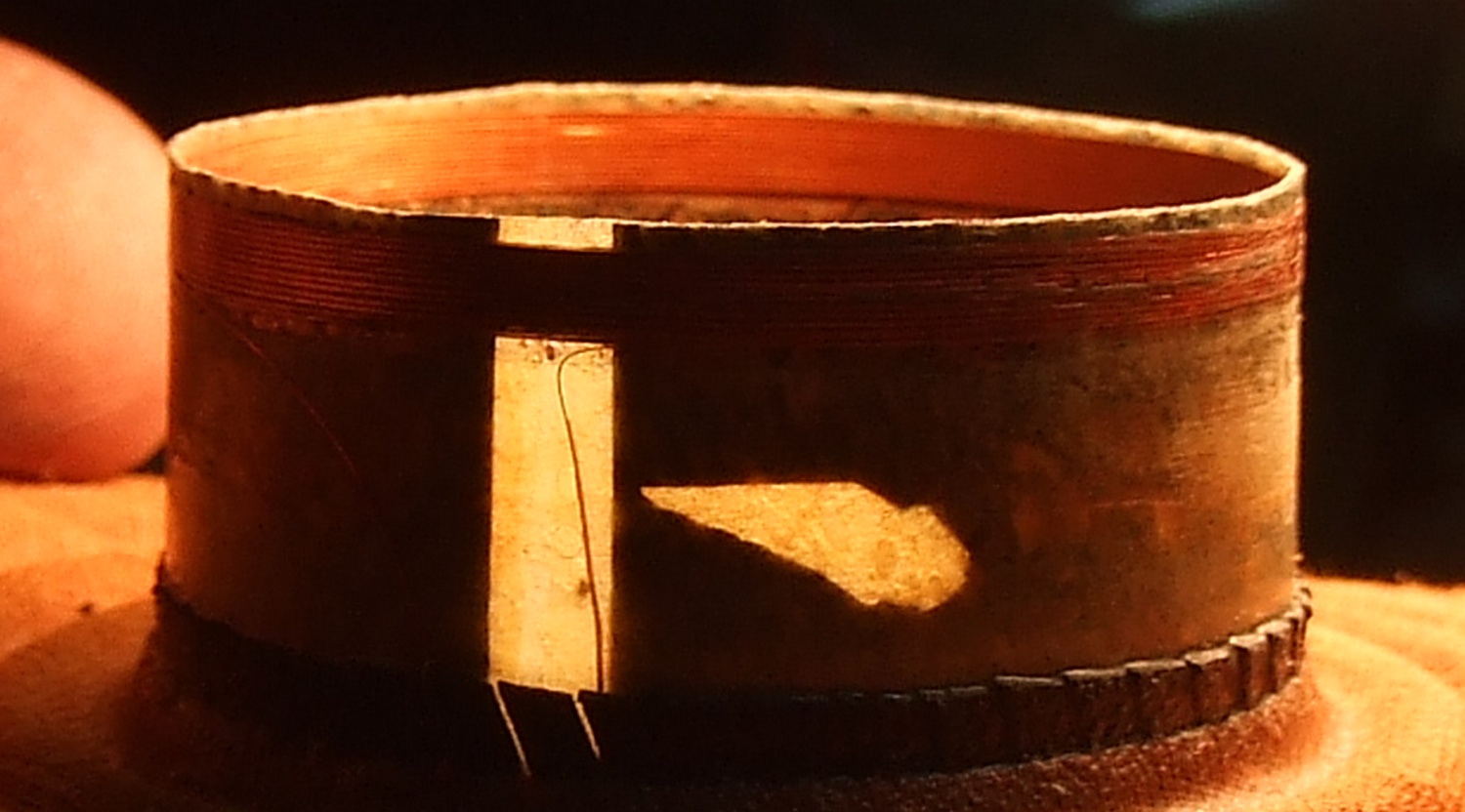 Если уж так не терпится повторить оригинал, то "раструб" катушки придется пришивать к диффузору, чтобы во время работы не отлетел. Диффузор рыхлый, и одного клея будет там мало. И надо будет очень тщательно следить за тем, чтобы не было перекоса при установке катушки.