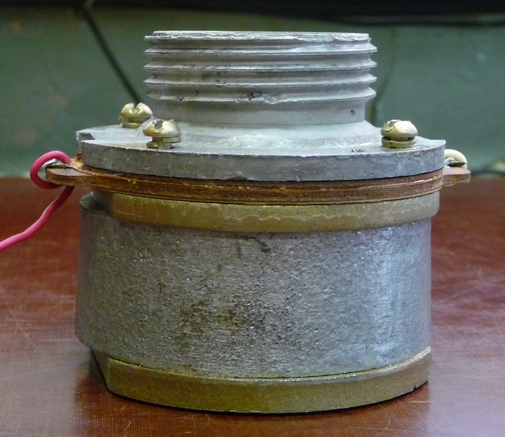 Наклейка на фланце высотой 3 мм для достаточного хода подвижки. Валялась от какой-то купольной кричалки, вот и пригодилась. Катушка проводом 0,15 мм 57 витков в 2 слоя.