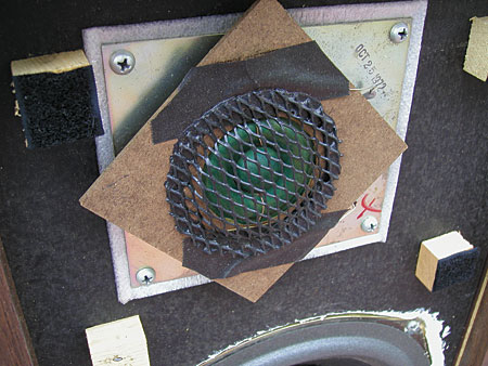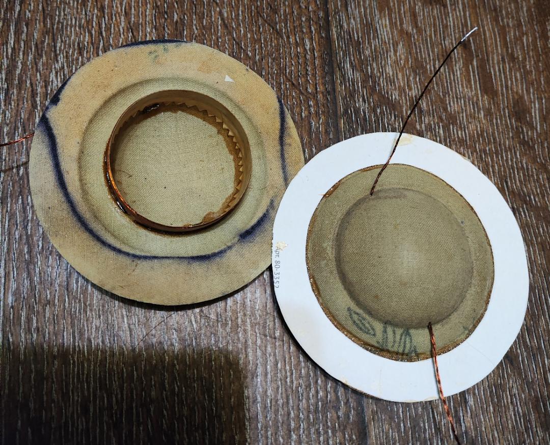 Извращаюсь потихоньку. Купольный средник по мотивам AR-5. Магнит, о ужас, от 10гд-30е. Работа примерно на половине. Можно было найти ткань без рисунка, покрасить тушью....но лень. Американцы в 60-70 не гонялись за внешним видом динамиков и я не буду в этот раз.