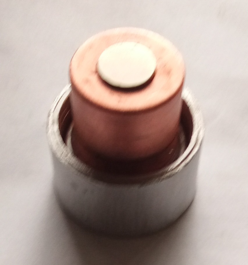 На втором фото и сборный алюминиевый цилиндр на неодимовом керновом магните, и медный колпачек на всю длину керна, с "противофазной" неодимовой таблеткой сверху.