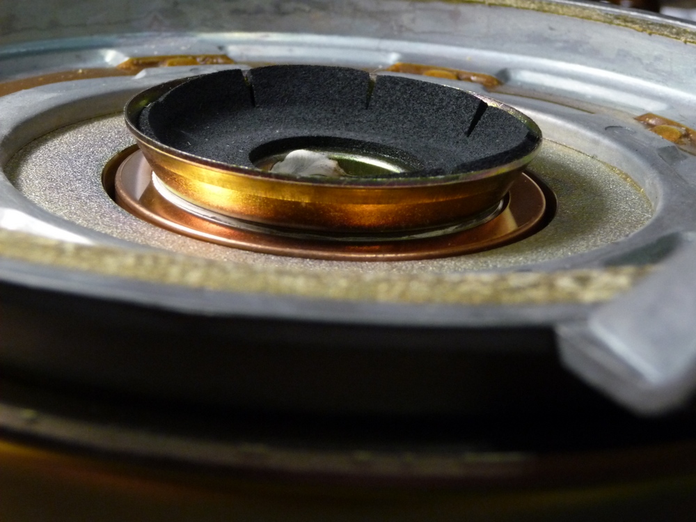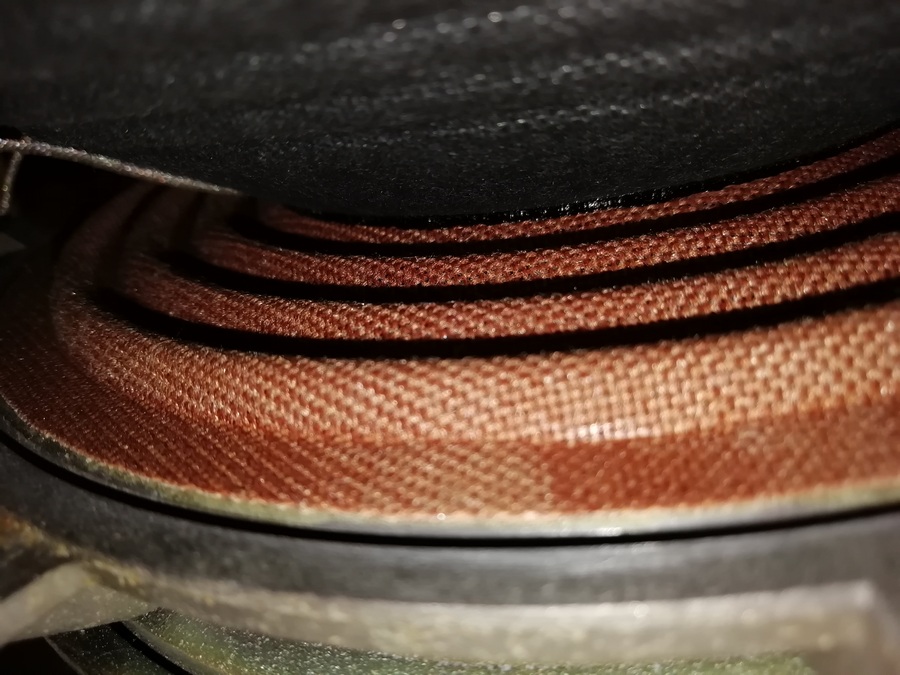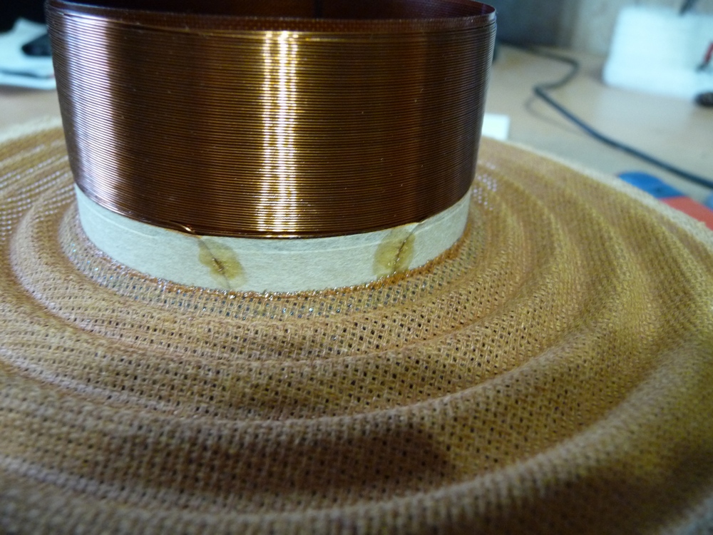 Каркас катушки вклеен в ЦШ как обычно, а вот диффузор вклеен не в стык каркас/ЦШ образуя триединство, а через одну волну от каркаса