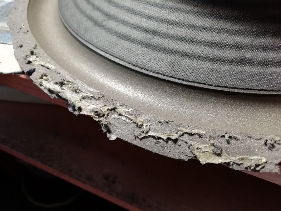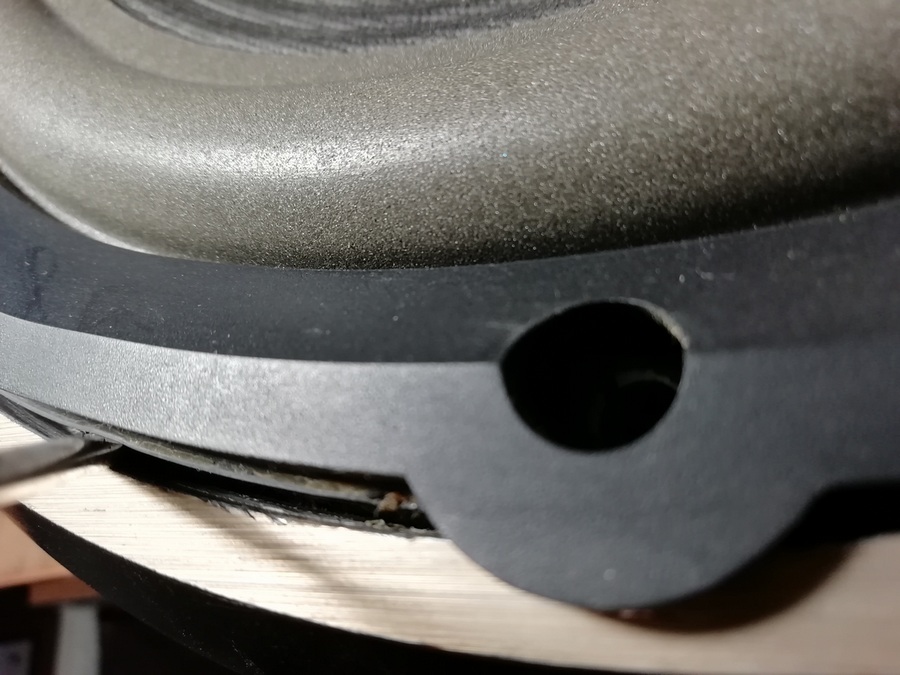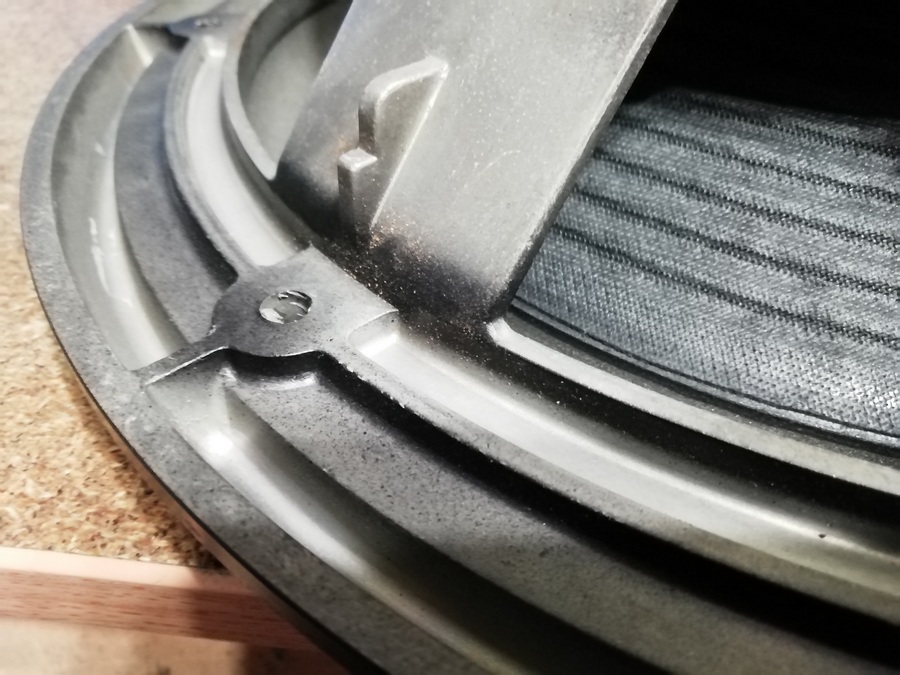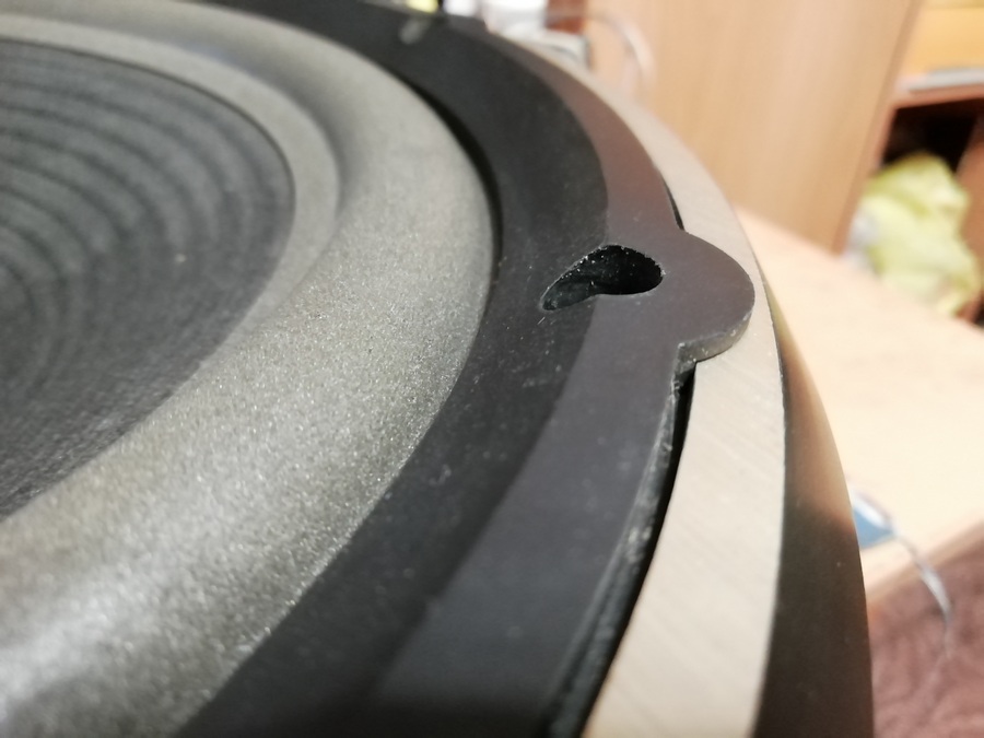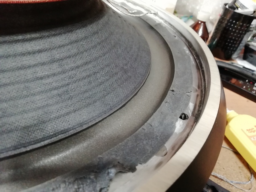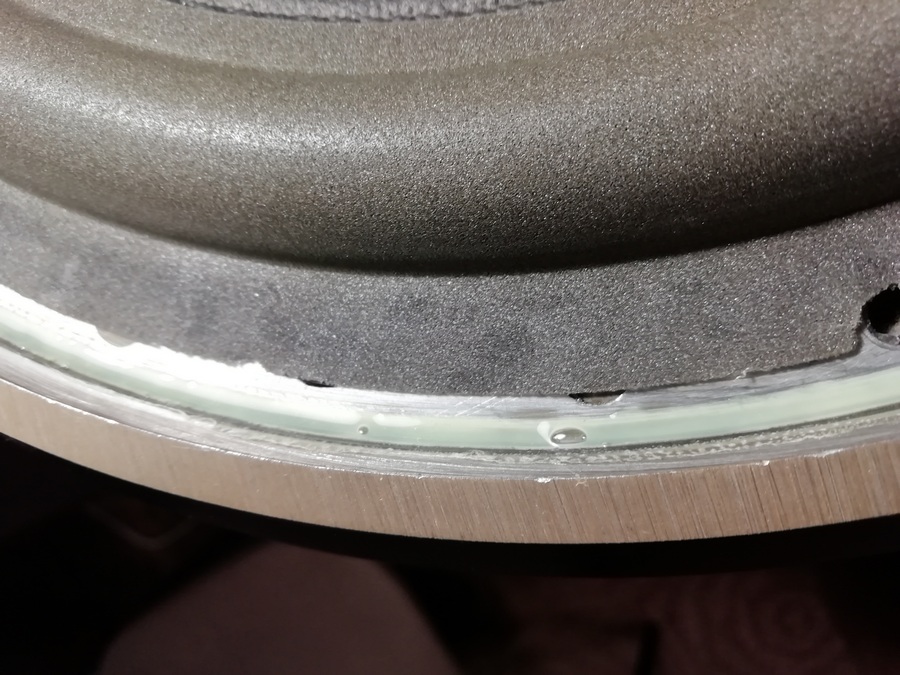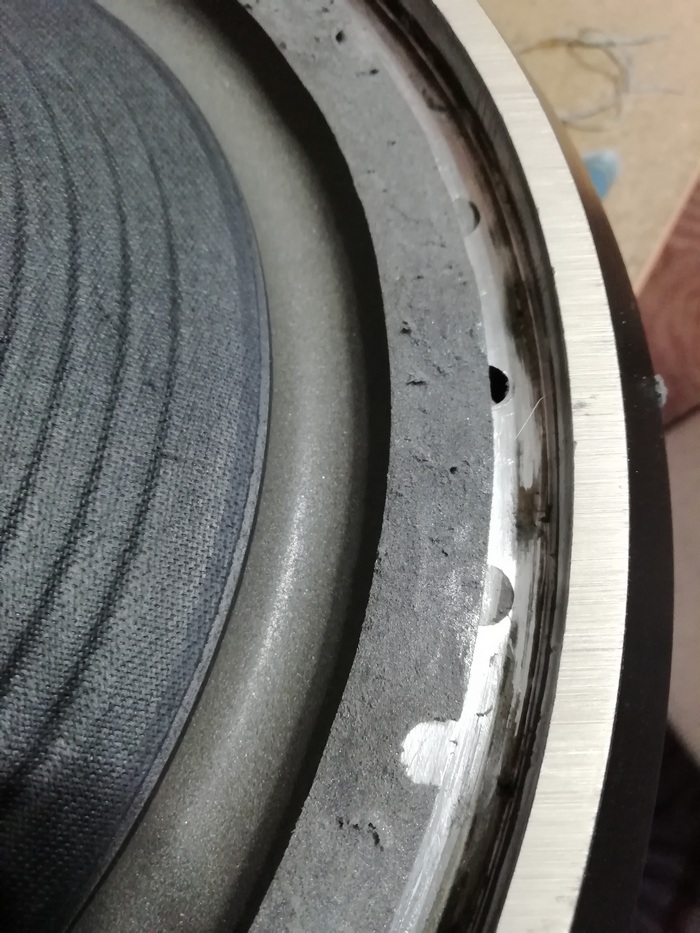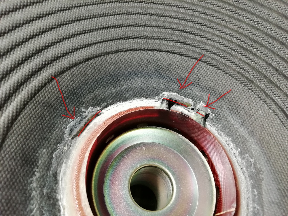 Диффузор с подвесом явно заменены, на всех фотографиях которые есть в сети, а также видео на ютубе подвес клеился манжетой с внутренней стороны.
