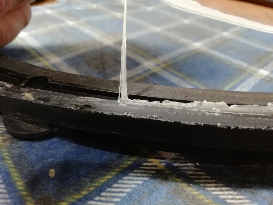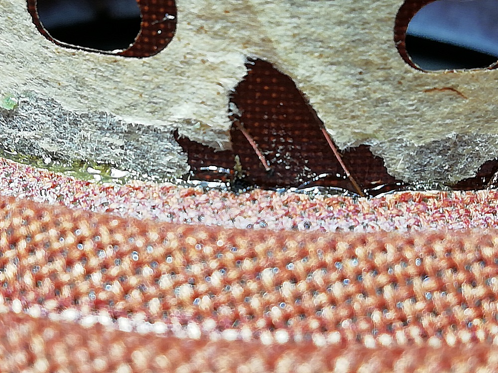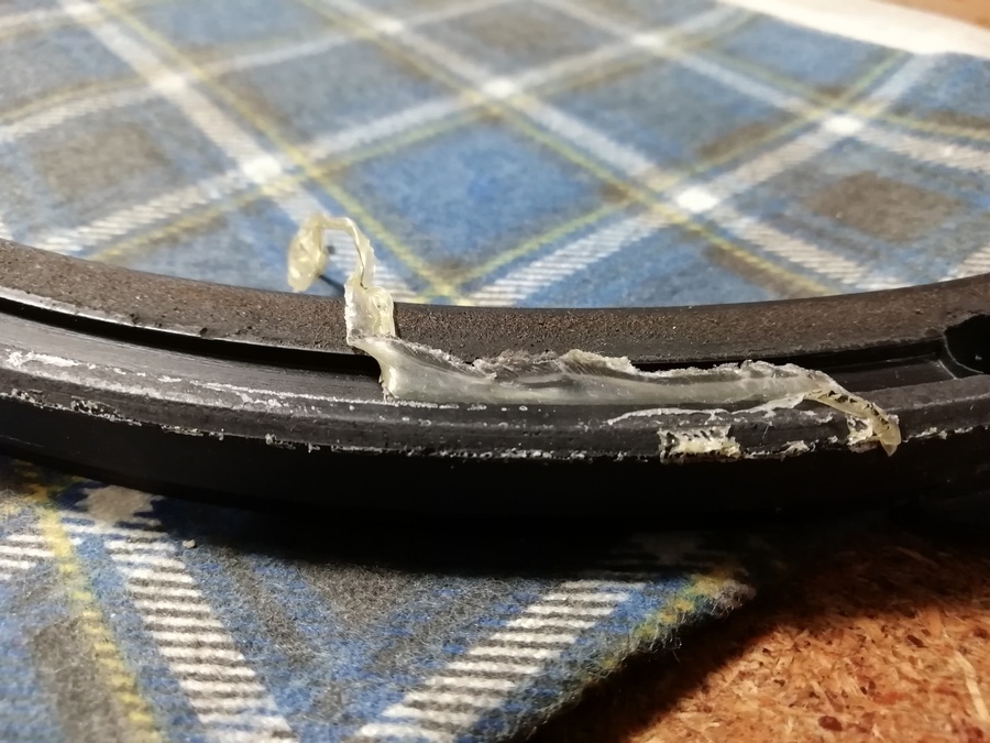 Потихонечку, помаленечку, аккуратненько убрал. По крайней мере именно этот клей если слегка тянуть, то он в месте соприкосновения с материалом начинает деформироваться и отрывается без нарушения слоя того же ППУ, Воротник данного ППУ подвеса очистился и сохранил свои возможности дальнейшей работы без последствий.