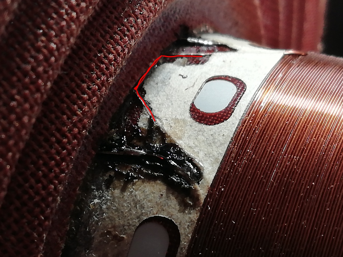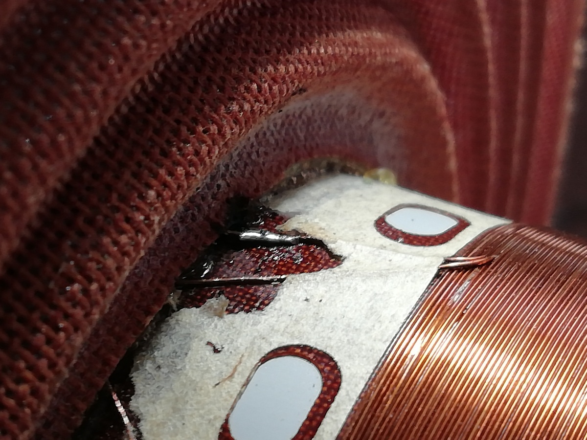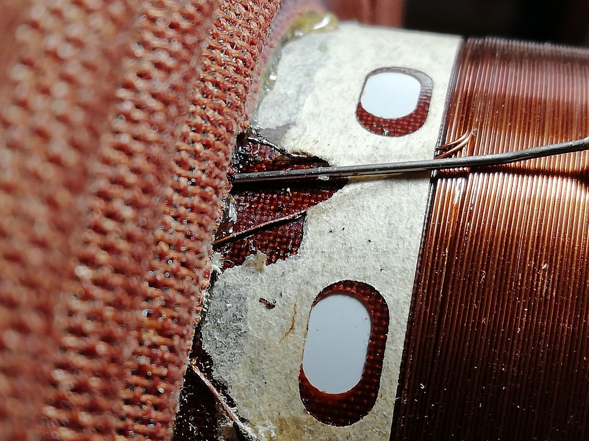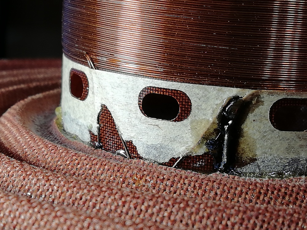 У данной катушки обрыв виден. Он как раз на стыке Каркас катушки/ЦШ/диффузор