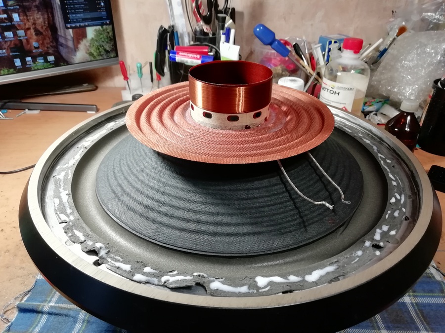 Завтра буду звонить хозяину динамика. Если он будет категорически против снятия колпака, придётся садить подвижку на оправку и делать вскрытие всех заходов концов катушки под диффузор. Левую сторону для восстановления, правую для профилактики. Чтобы больше никогда такого не случилось.