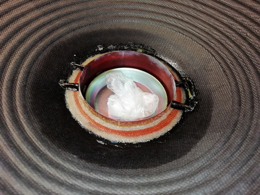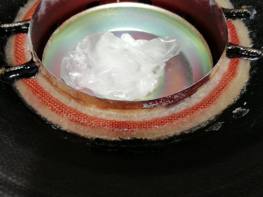 Воспринимается сия конструкция как механический фильтр обрезающий всевозможные СЧ/ВЧ составляющие и передающиеся от каркаса катушки на диффузор.