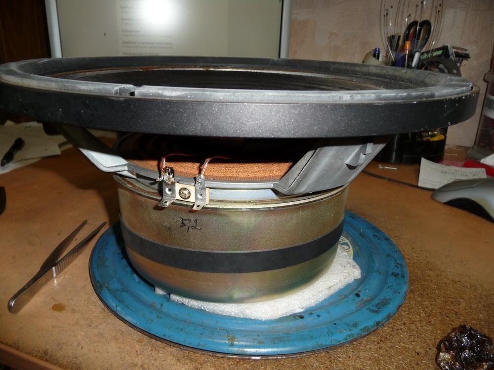 Позавчера привезли 12" НЧ динамик от акустики "Pioneer S-1800DV": https://audio-database.com/PIONEER-EXCLUSIVE/speaker/s-1800dv-e.html с обрывом обеих катушек.