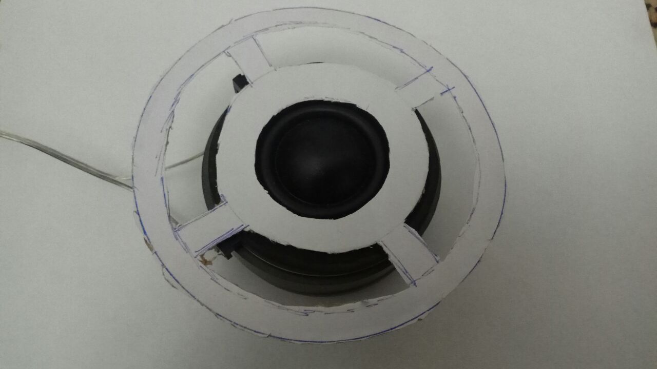 Что еще проделал. Купил резиновое колечко наружный диаметр 50мм, внутренний 44 (3мм диаметр) вложил во впадину и придавил именно это колечко. В данном случае оно практически не касается подвеса а лежит углублении, в котором подвес переходит в шайбу крепежную. Придавил в двух-трех местах и также ачх выправилась в линию. Глянул на то, как близко фланец (рупорок) TWA030-11 подходит к краю выпуклой части подвеса и как в моем TWA030-07. В TWA030-11 он практически вплотную и нет зазора, а в TWA030-07 где-то 1,5 мм отступает. Плюс, под фланцем есть мягкая подложка и в зависимости какой она толщины и как сильно прижат фланец он будет по разному фиксировать подвес. Как мне кажется, есть сильное влияние от волны, которая отражается от крепежной шайбы (куда подклеивается подвес и обратно идет на диффузор. Может от партии к партии разная подложка, усилие крепления точность приклейки подвеса гуляют и поэтому все мы получаем разную ачх. Вот с таким фланцем динамик вообще не чувствует внешнее оформление. Это из картонки. Для сравнения вырезал один в один как родной фланец и да он ооочень сильно чует окружайку.