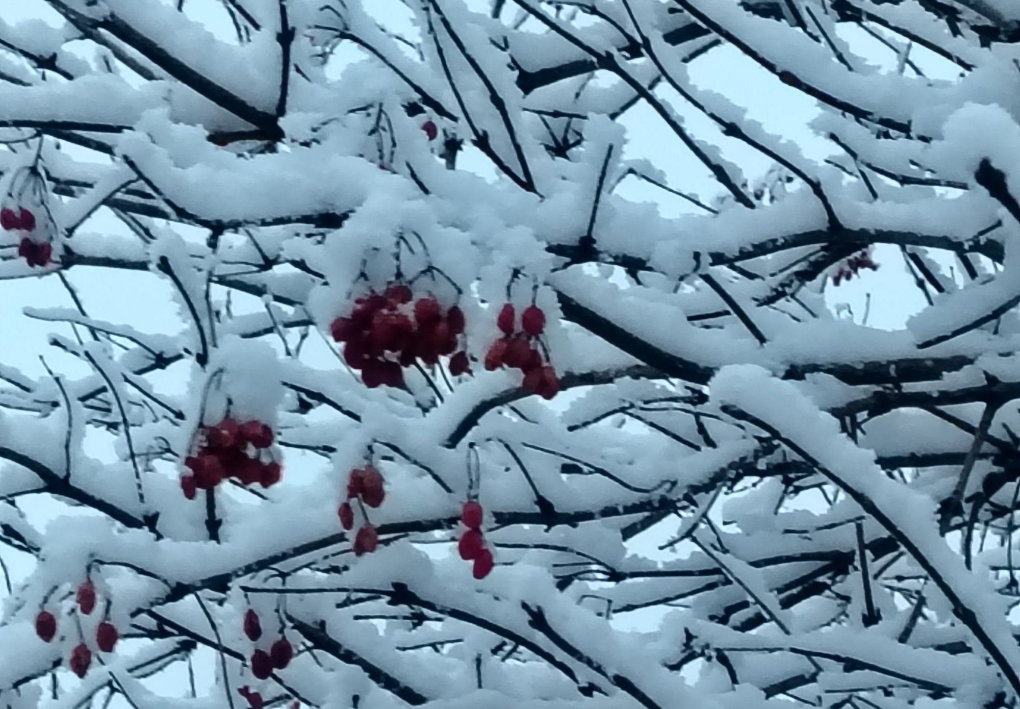 У меня за окном вчера и сегодня лёгкий мороз - 3, - 5. Снега прилично. В посёлке нет почти никого. Тишина и покой