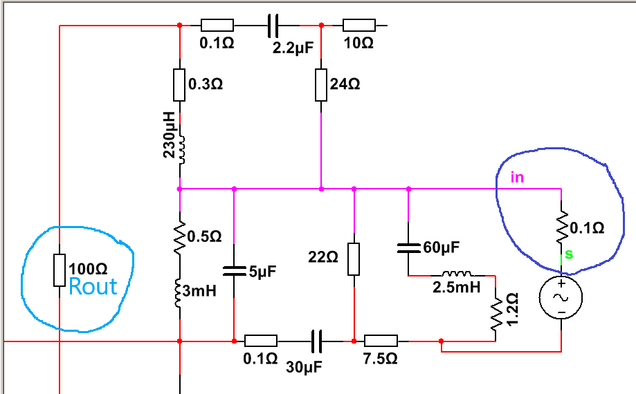Так, це симуляторне значення вихідного опору ланок послідовного фільтра, при роботі від підсилювача з Rout 100 Oм.