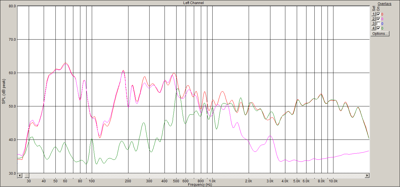 Надо и это попробовать, и коррекцию АРО на 10дБ на частоте 40 Гц (а на 100 Гц - не больше +1дБ), и #1 - тоже попробовать. Последний вариант наиболее близок к тому, что нам требуется: 40 Гц поднимает значительно заметнее, чем 30 и чем 50. Все варианты выравнивают полку НЧ относительно СЧ, но по-разному.
