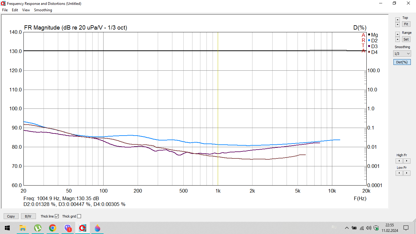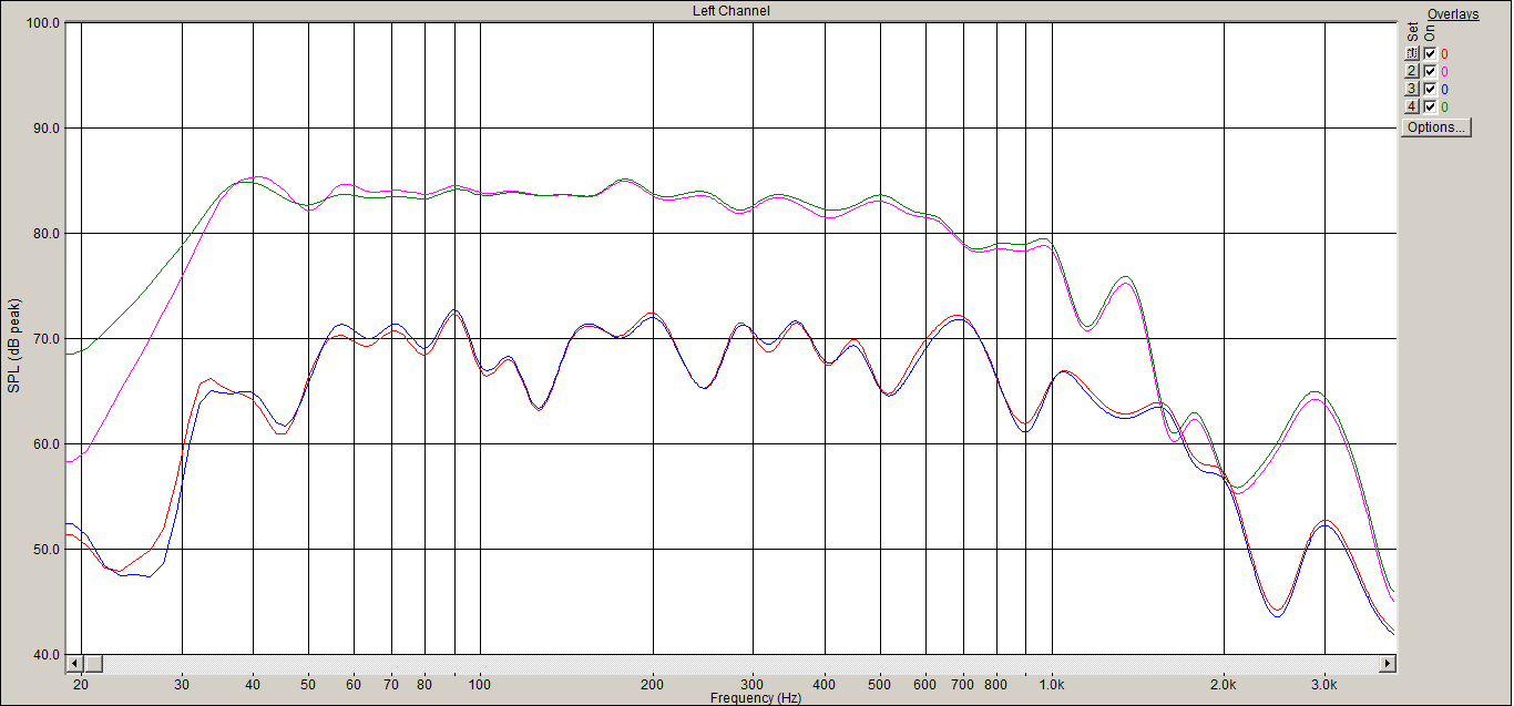 Оттаскиваю микрофон на 0,5 м от динамика, по оси. Не меняя уровня делаю замеры по двум платкам корректоров. Результат: