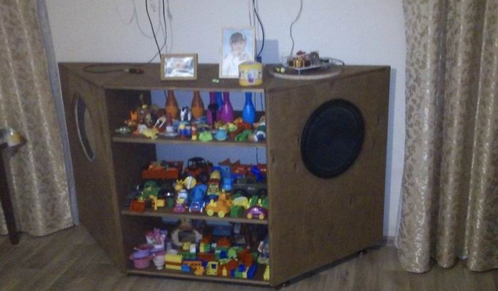 потом, при выходе на большие колонки - был компромисс с женой, что колонки - будут из себя представлять шкаф для детских игрушек (долго подводил к этому). Ещё и дверцы позже были там сделаны.