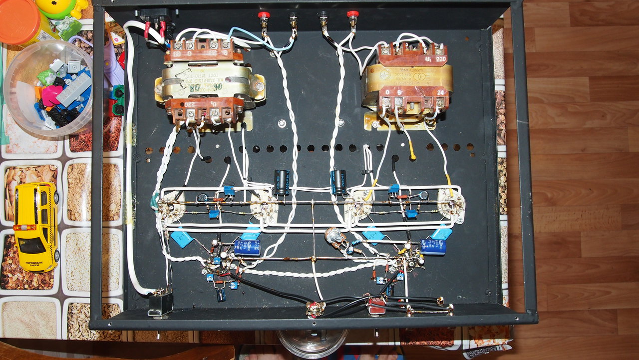 Я контролировал милливольтметром В3-38 уровень фона на выходе усилителя. В этом случае сразу виден результат любых действий по борьбе с фоном.