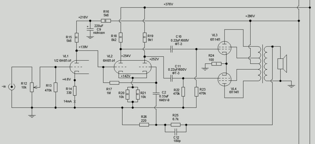 Ах, пардон. Я забыл, что прежняя схема была Лофтин на 6П14п. Она же дико неуправляемая и не должна работать....Забыл!)))