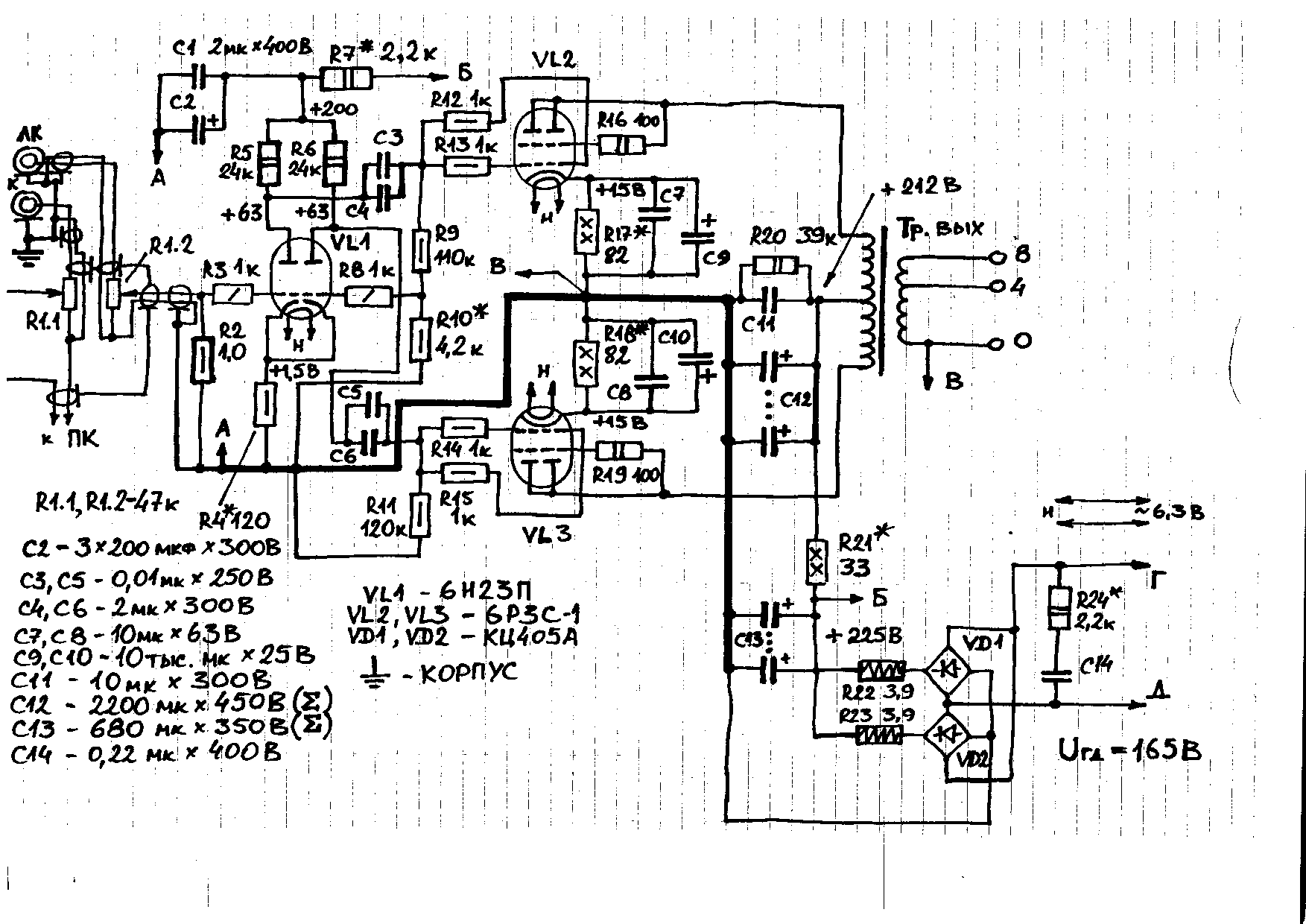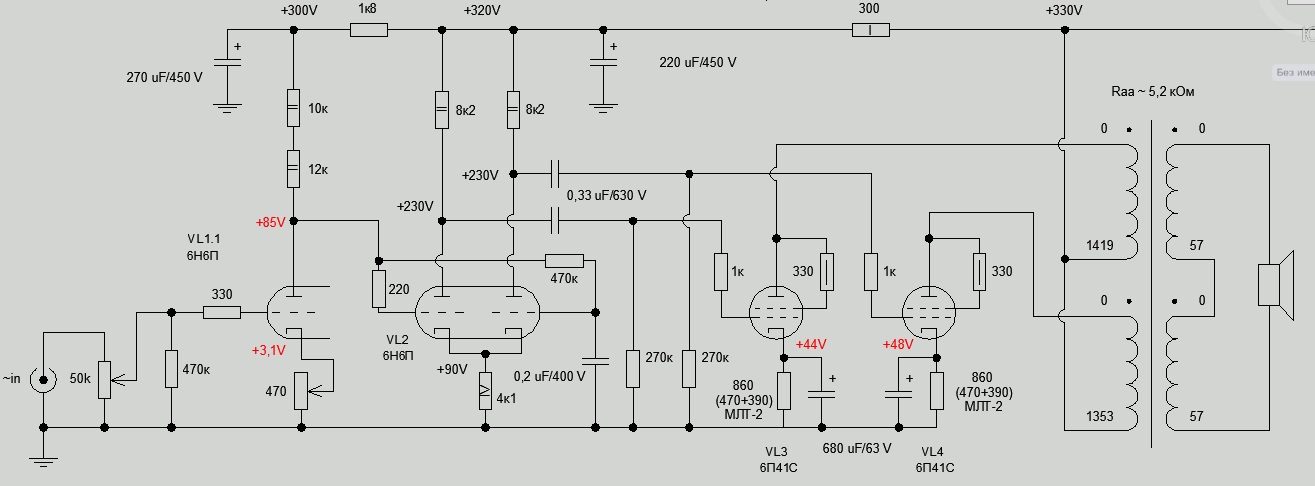 сеточный резистор и 1м и 620 ком - за пределами разумного для 6н6п. Она имеет свойство уплывать режимом из-за токов сетки. И кто эти номиналы указал, тот дурак.Собрал макет. Но потерпел фиаско при попытке его запустить.