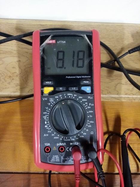 Дальше - замерял выходное сопротивление. На нагрузке 8,2 Ома переменное напряжение было 6,45 В, а на нагрузке 17,5 Ома, переменное напряжение составило 6,76 В. Посчитал по формуле и получил, что выходное сопротивление составляет 0,77 Ома.