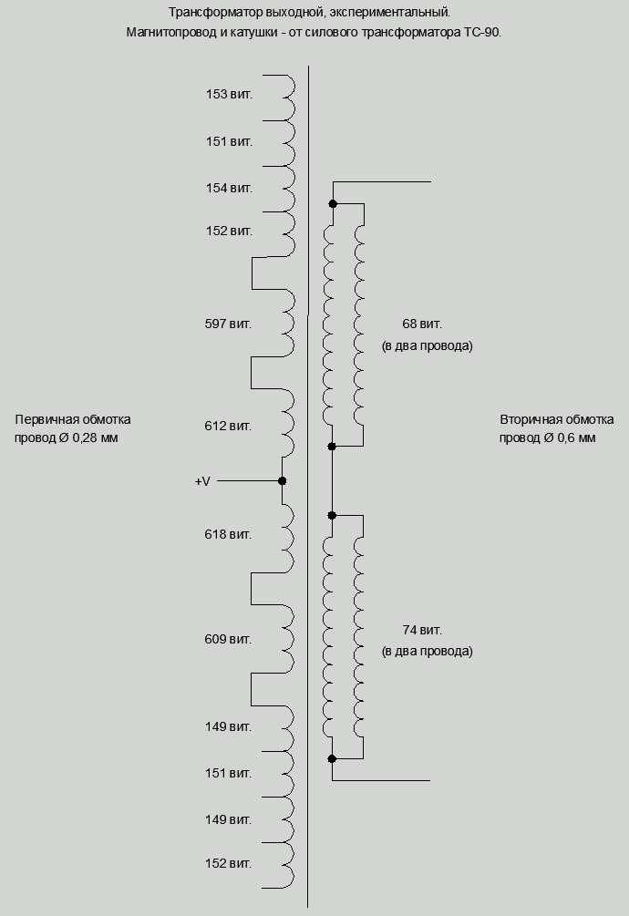 Схема по факту этого трансформатора получилась такая: