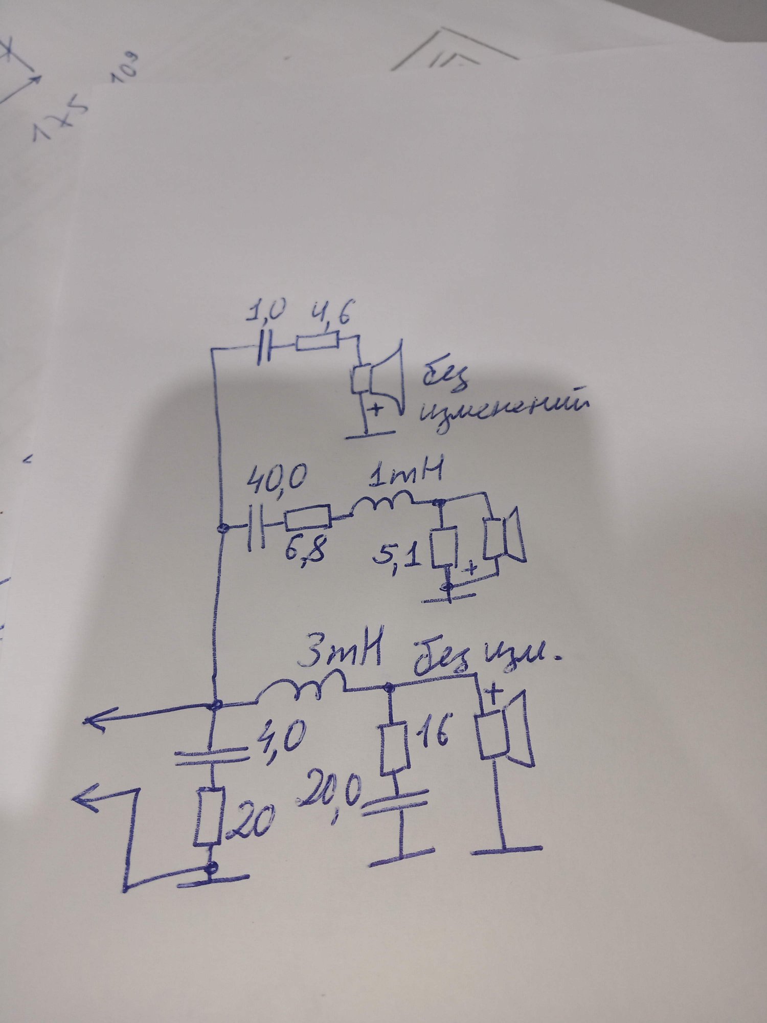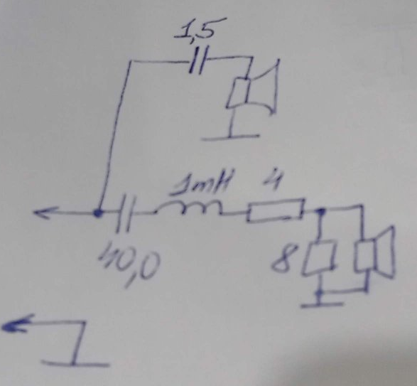 Пассивные разделительные цепи для биамп фулл вершн, чтобы НЧ - напрямик, а СЧ - без конденсатора 40 мкФ.