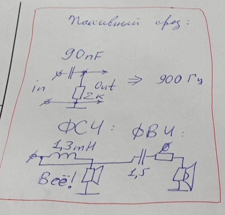 Схема пассивной цепи = ФНЧ, отклонение в диапазоне 150...5 кГц - меньше 0,5дБ:Посмотреть вложение 81144