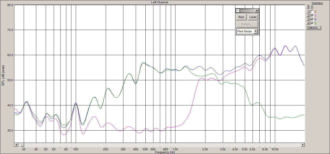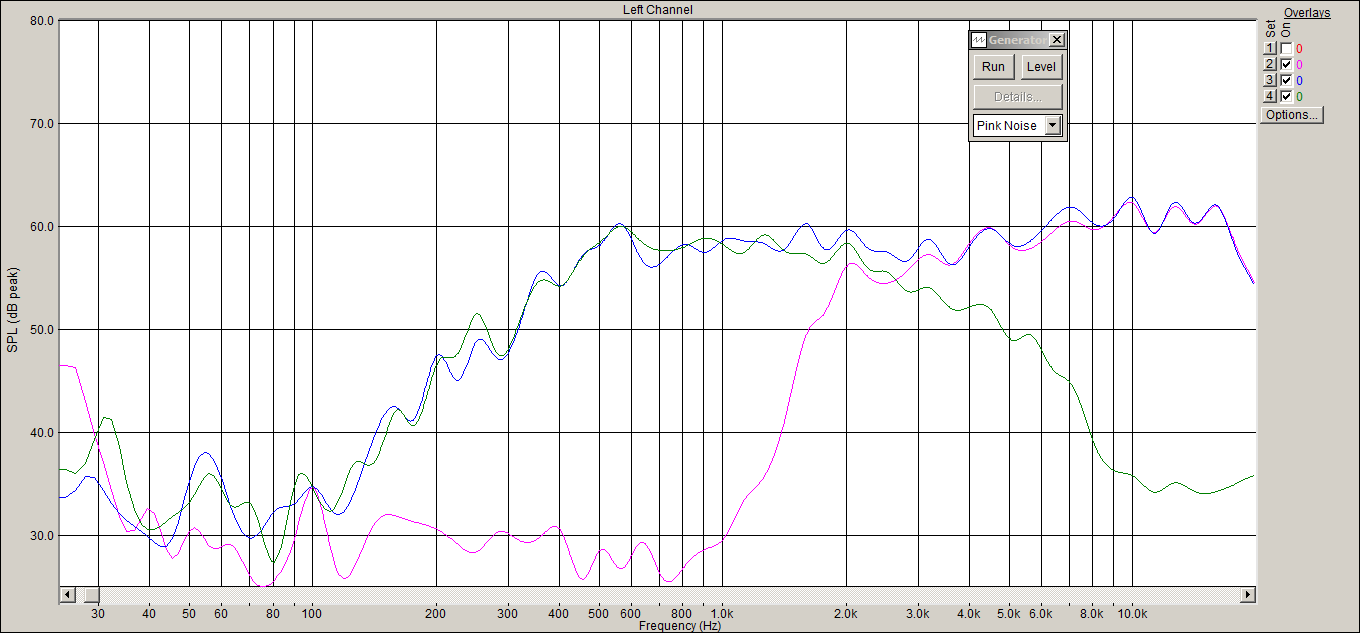 Спрошу кой-чего. Когда Вы снимаете эти три АЧХи, микрофон не двигается с места? Я к тому, что суммарная ВЧ должны бы совпадать с полосой ВЧ, а у Вас - расхождение до 3дБ.