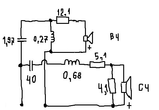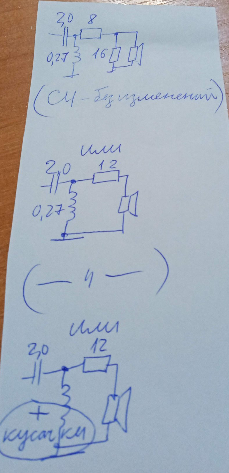ВЧ снимите со схемой 2 мкФ; 0,27мГн; 14 Ом; 16 Ом.