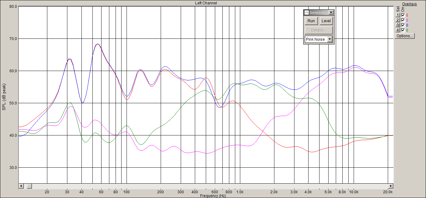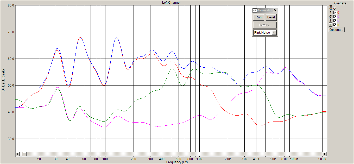 Микрофон при измерениях и при изменении номиналов - теперь не двигаю. Единственное - между этими двумя замерами микрофон ездил вверх-вниз, так как замерял в двух положениях каждый вариант. А полосы в электронном виде - не сохранил.