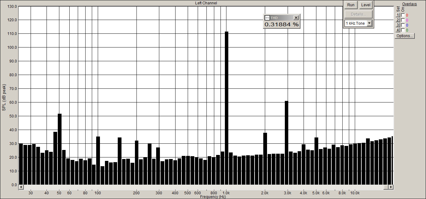 как её интерпретировать - особо не знаю. Вижу столб на третьей гармонике. Но при этом - общие искажения 0,3%. Может - вы мне подскажите, можно ли считать плату прошедшей успешно это испытание.
