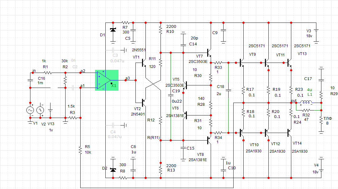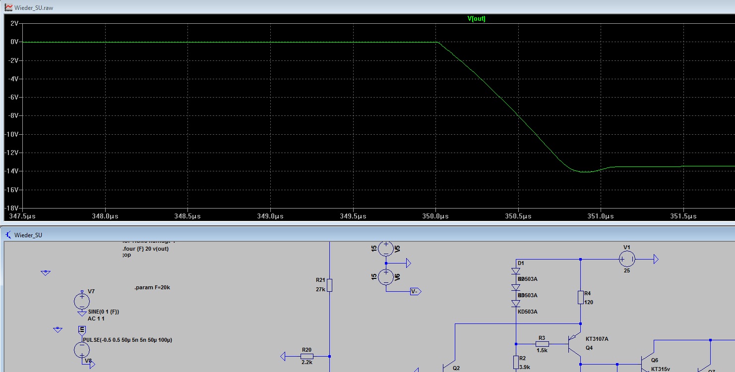 Приятно отметить практически от питания до питания размах полезного сигнала, потеря менее полувольта.