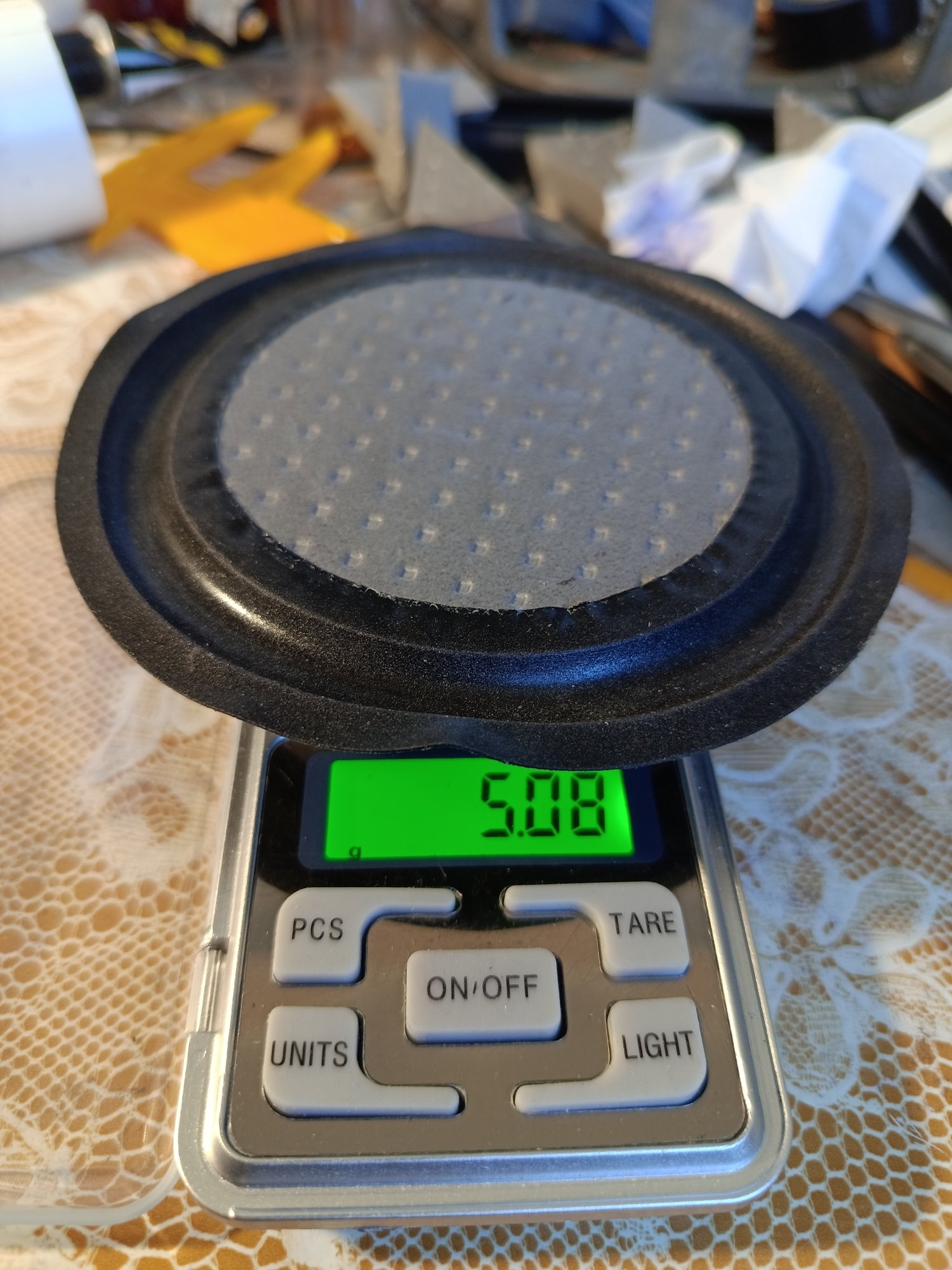 Ощутимую жесткость должен добавить двухкомпонентный пенополиуретан( тот которым заливают холодильное оборудование или делают тёрки строительные и т.п.) он имеет большую жесткость и малый вес. Но в домашних условиях этим заниматься сложно. Хотя я и планировал попробовать сделать с него диффузор в свое время, но ещё не реализовывал.