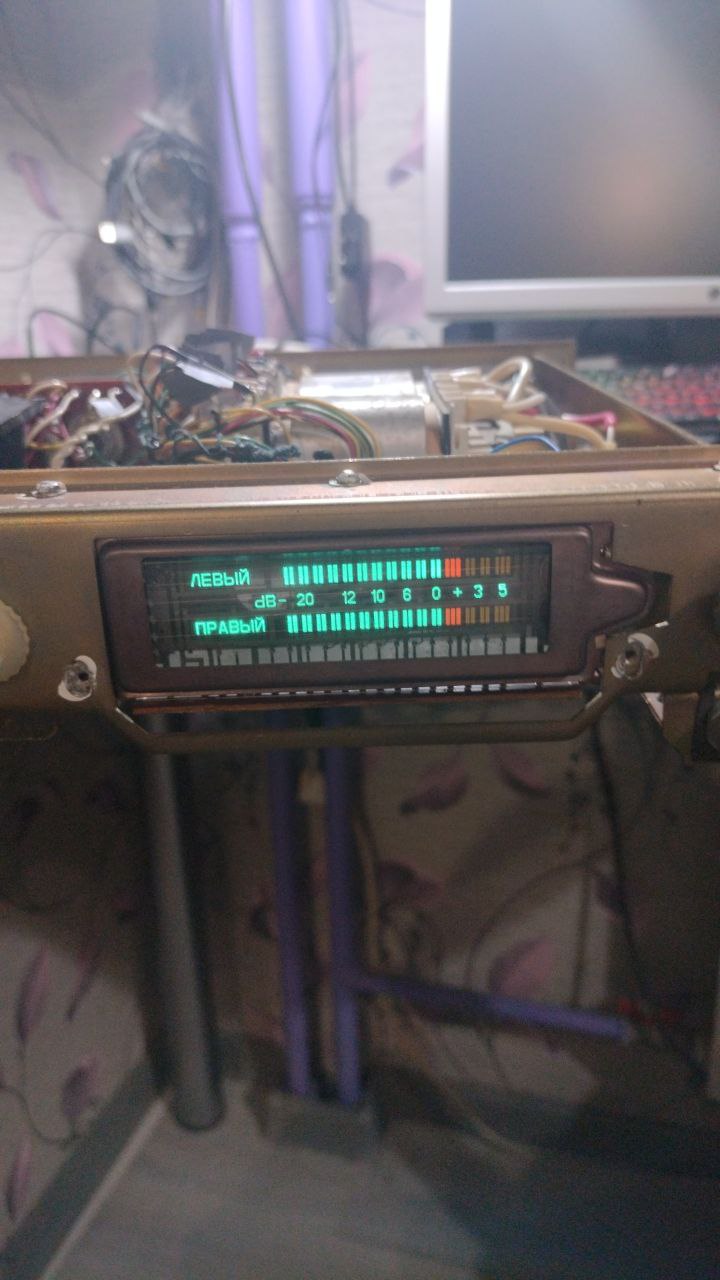 Нашел человека, который паяет современную версию платы индикации, заказал без колбы, плата приехала, запаял колбу, перепиновал разъем -- индикатор заработал. Чуть получше чем от стока, более отзывчиво работает, но я думаю никому тут объяснять не нужно чем лучше индикация, которая работает после предварительного, чем та, которая работает после УНЧ.