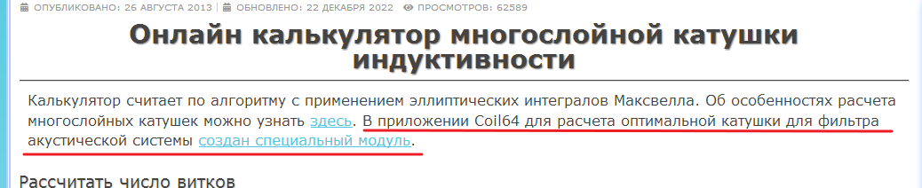 В той программе по расчету катушек звуковых забиты 2 формулы индуктивности. Уже 4 получается.