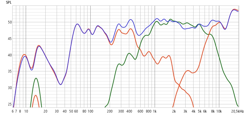 Рассматривать эти АЧХ забавно и увлекательно, однако, настраивая свои АС я столкнулся с тем, что ровная в метре по оси АЧХ говорит только о том, что она ровная в метре. И мало говорит о том, как будет субъективно восприниматься АС в 2 метрах. Направленность бы ещё, по горизонтали в 30 градусах от оси, по вертикали +- 10. И ещё, мне по приведённому графику кажется что не помешал бы режектор на ~ 330 Гц децибелла на 2. Можно басовик отдельно от всего в ближнем поле посмотреть?