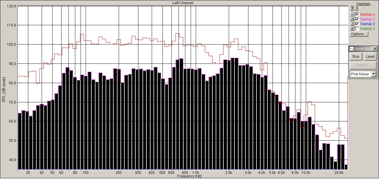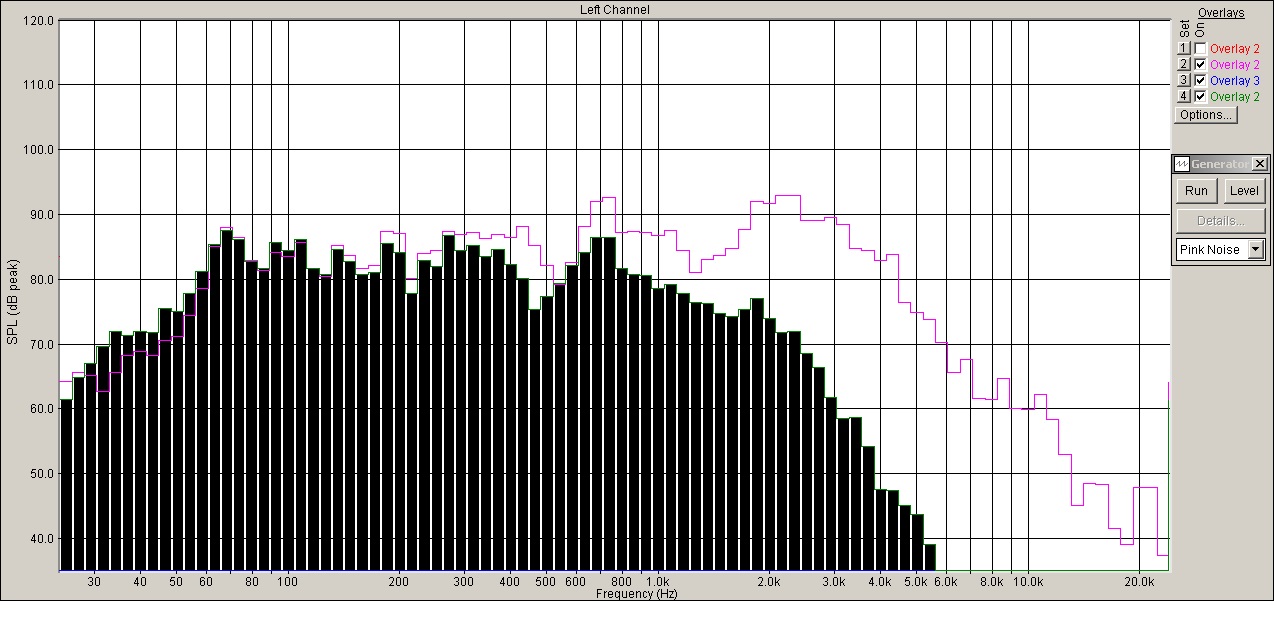 Акустика стоит ближе к центру,если двинуть к задним шкафам,то и добавятся 30-40 Гц.Считаю общую линию главной в оценке итогового результата.