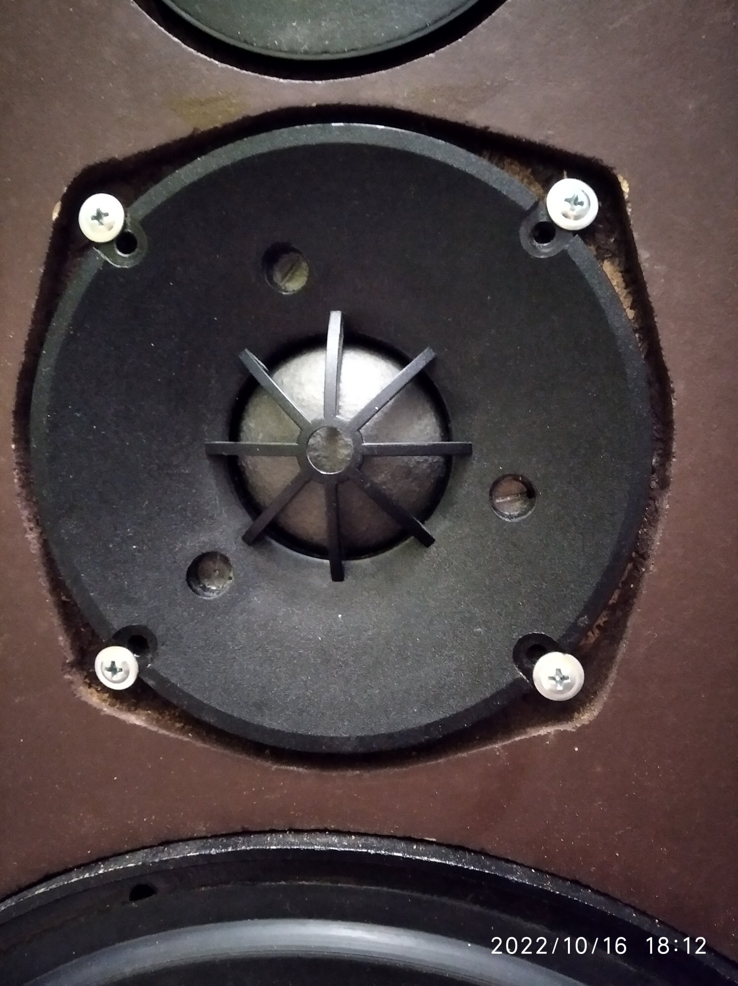 ВЧ головка с купольной тканевой мембраной полу яйцевидного профиля, жесткая, но сильно демпфированная. При надавливании медленно выпрямляет вмятину, под конец с резким щелчком.
